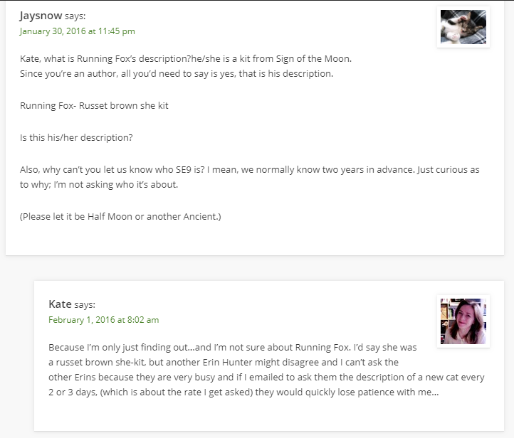 Перед путешествием в горы упоминаются котята Совиного Пёрышка и Зазубренной Молнии.