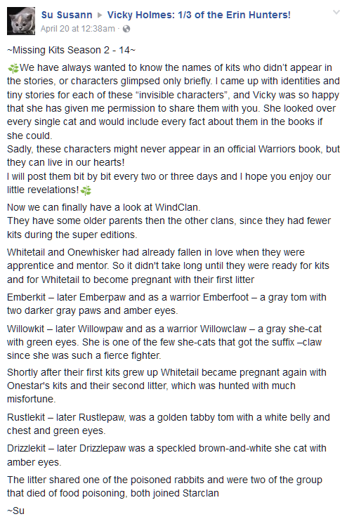 Его ученица стала воительницей и получила имя Конопушка.