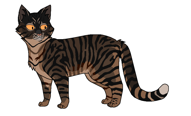 - На иллюстрации из «Битв племен» он изображен серым с белым животом и лапами и с зелеными глазами.