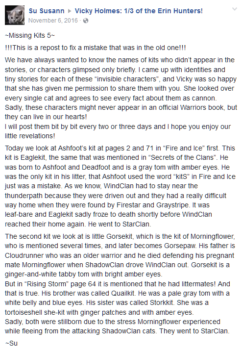 - ↑ 2,0 2,1 2,2 2,3 2,4 2,5 Семейное древо котов-воителей (официальный вебсайт)