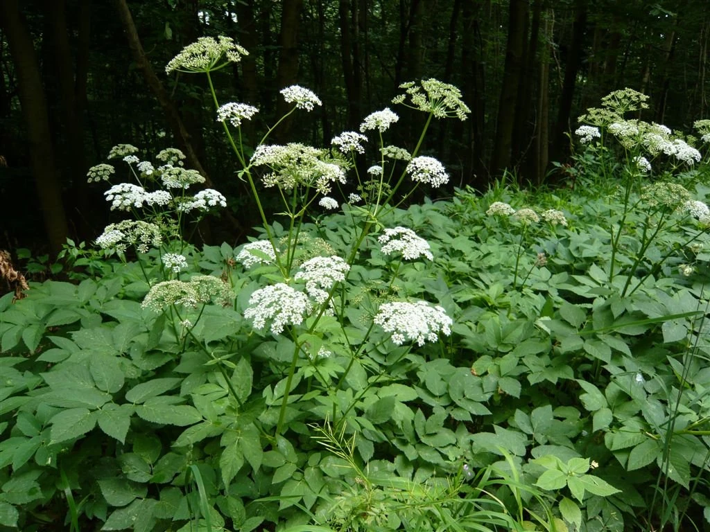 | Цикута | Растение с белыми или зелёными цветками, собранными в зонтик. Растёт во влажных местах. После смерть-ягод это самое ядовитое растение в лесу. Вызывает судороги, сильные боли и пену изо рта. | |